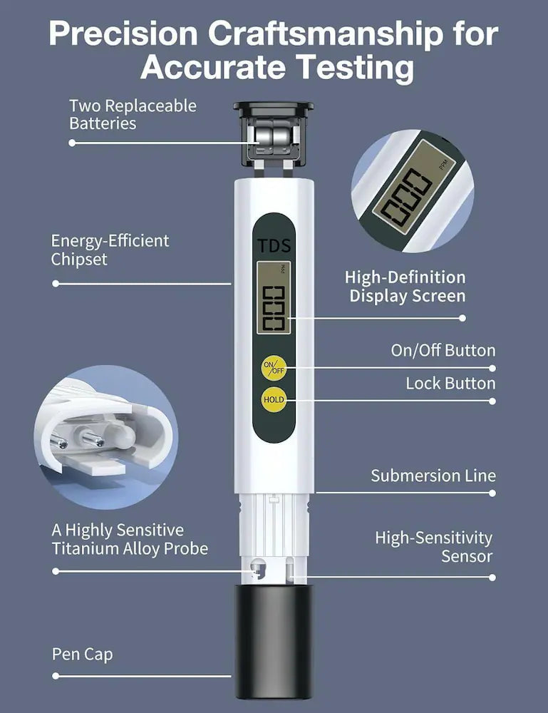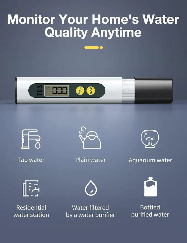 Testing your water has never been this simple. With just a single press, the TDS meter instantly displays the purity level on its clear digital screen — no complicated steps, no waiting. Designed with ease of use in mind, it’s perfect for daily use at home, in the office, or while traveling. Even kids can operate it safely.